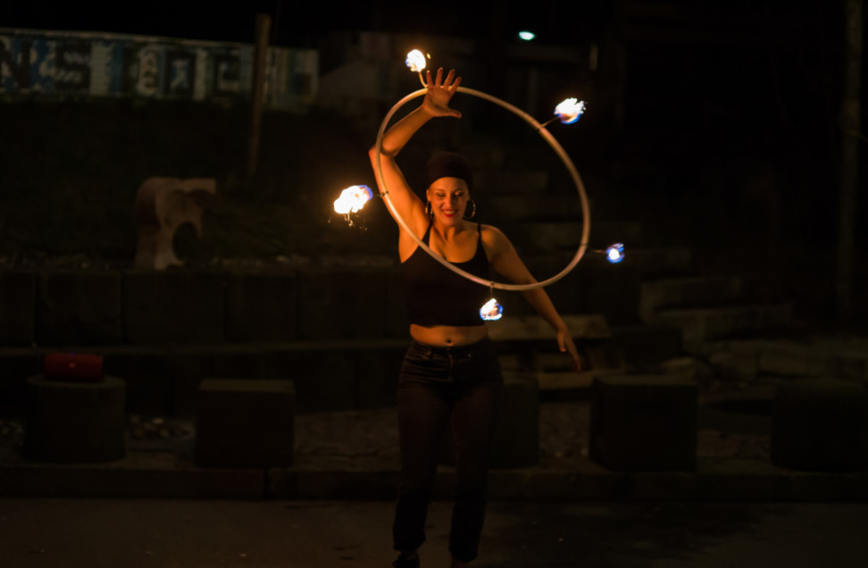5-20 Minuten Performance mit Flowtoys (Hula Hoop, Poi, Fans, Handtorches).