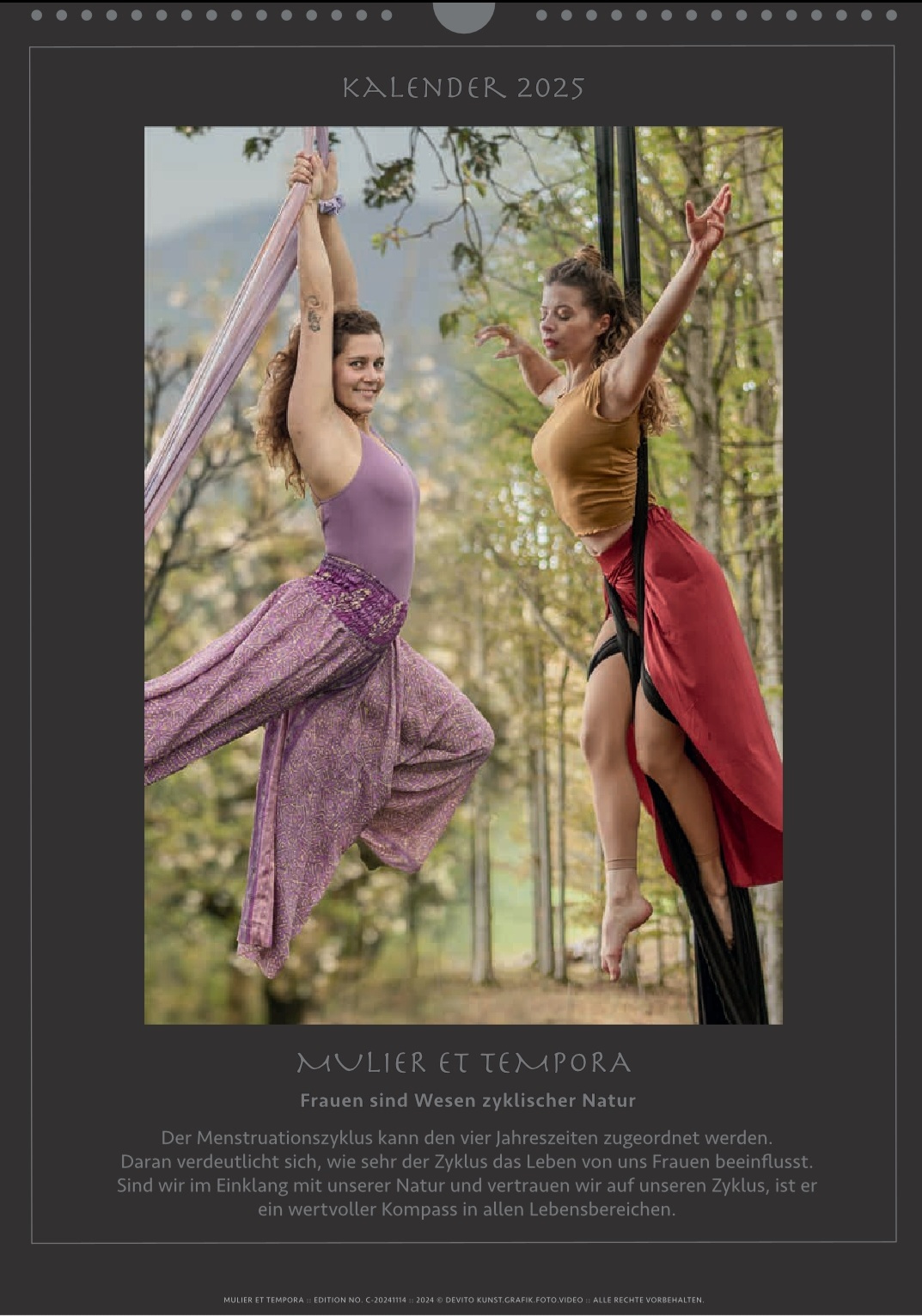 Das Projekt Mulier et Tempora ist entstanden als sich die beiden Luftakrobatinnen Andrea Häberle und Leona Jakob in einem Vertikaltuch Retreat kennen gelernt haben. Durch viele feministische Gespäche über diverse Themen, ist die Idee ein Projekt über die vier Jahreszeiten und den weiblichen Zyklus anzureissen aufgekommen. Für die Fotos haben wir den Fotograf Salvatore DeVito beigezogen.